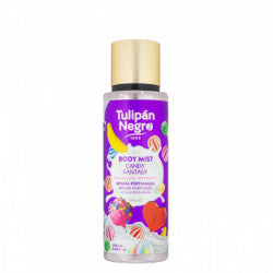 Rocía sobre tu piel una fragancia dulce y divertida con este body mist Candy Fantasy de Tulipán Negro. Su aroma recuerda al universo de las golosinas: notas de caramelo, frutas y dulzor que envuelven el cuerpo con una estela alegre sin empalagar. Ideal para usar tras la ducha o complementar tu perfume favorito, dejando tu piel perfumada y ligera durante el día.